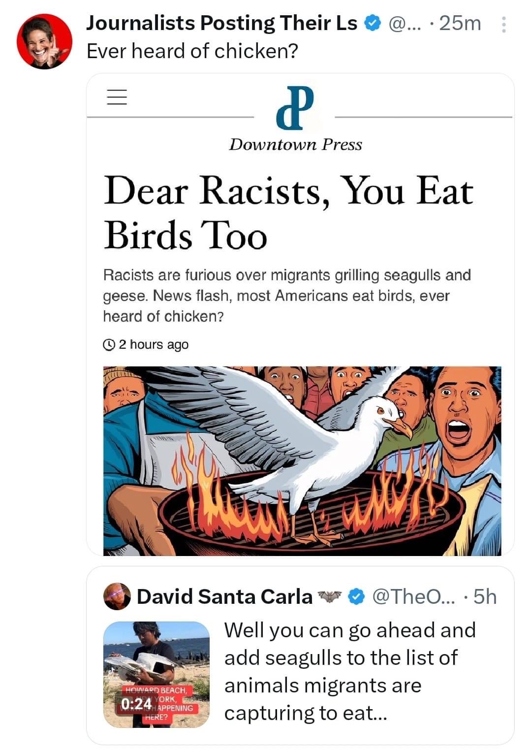 I'm sorry but chicken and seagulls aren't the fucking same.