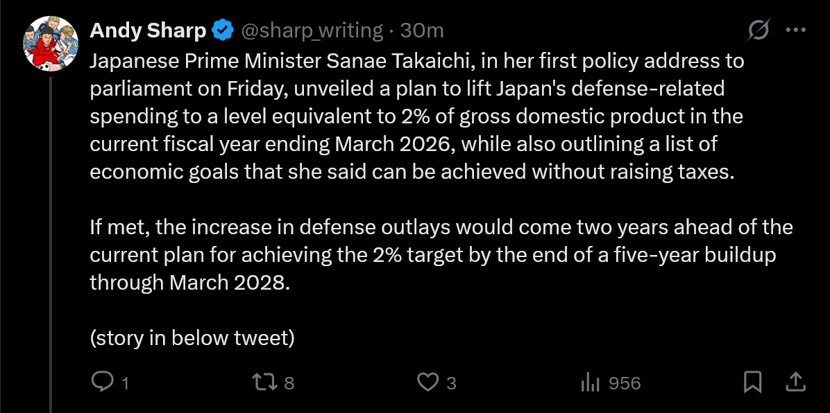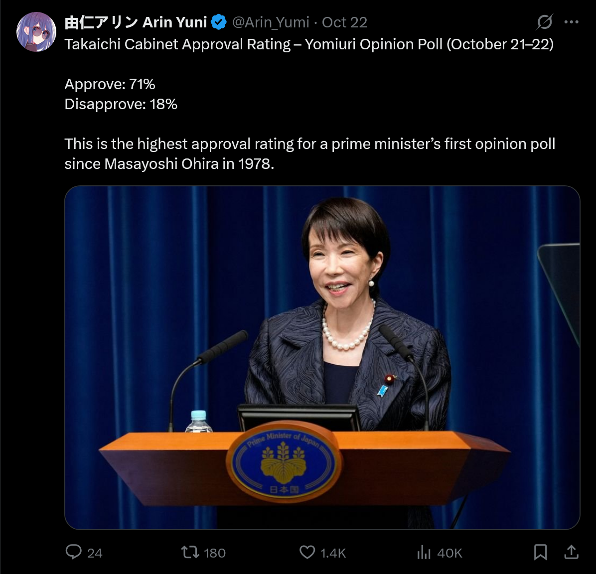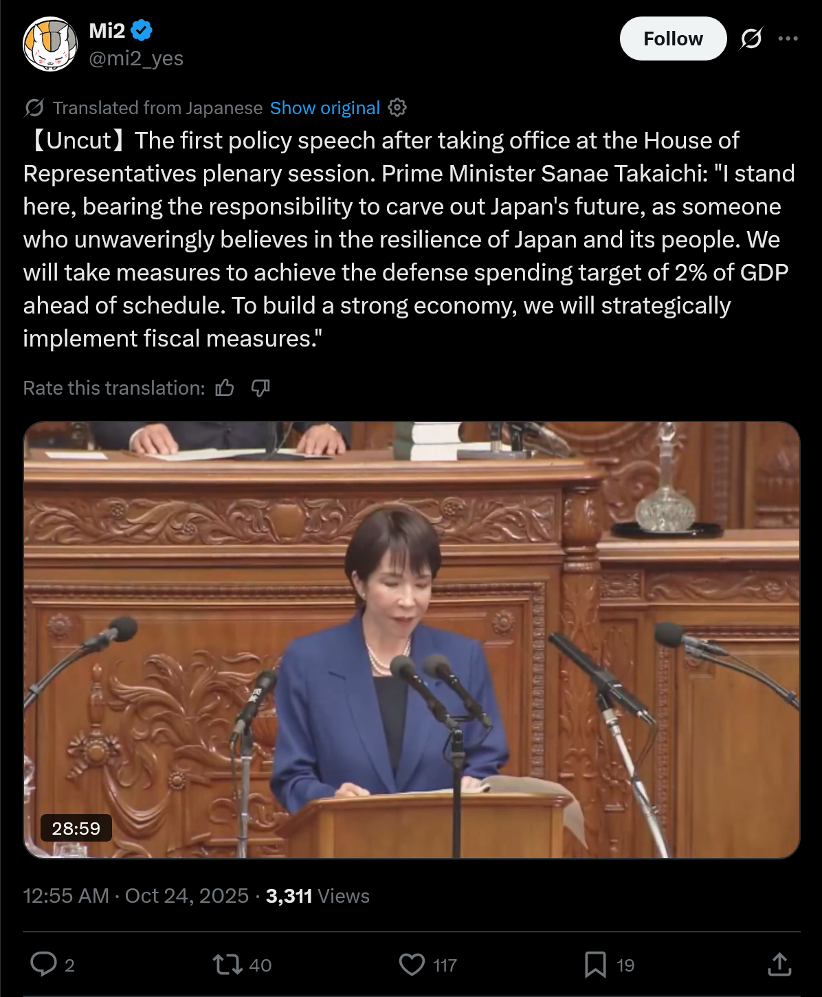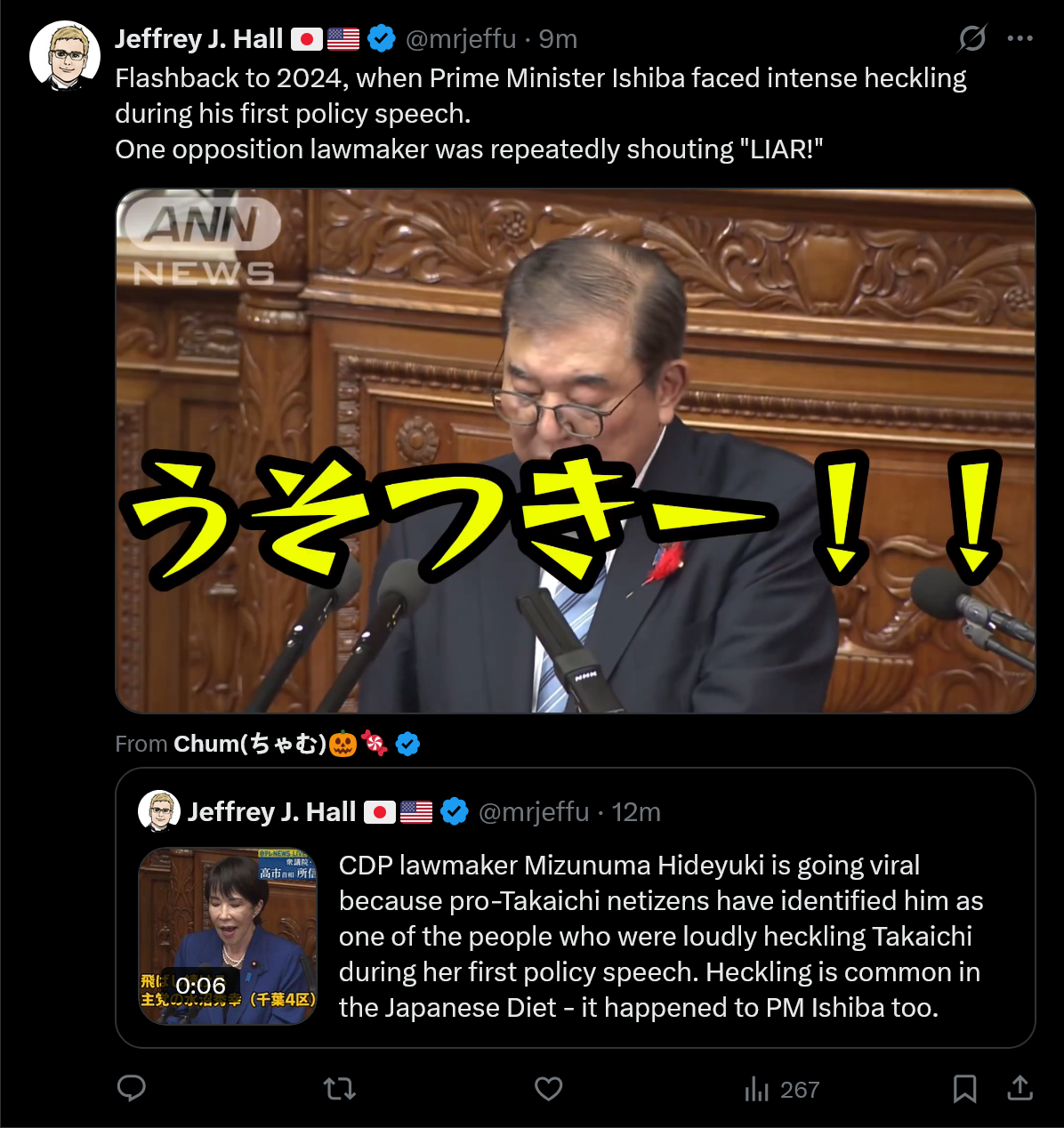 I thought Japanese politics was incredibly tame. Apparently, heckling during their version of State of the Union is completely common. https://x.com/mrjeffu/status/1981603983837037027