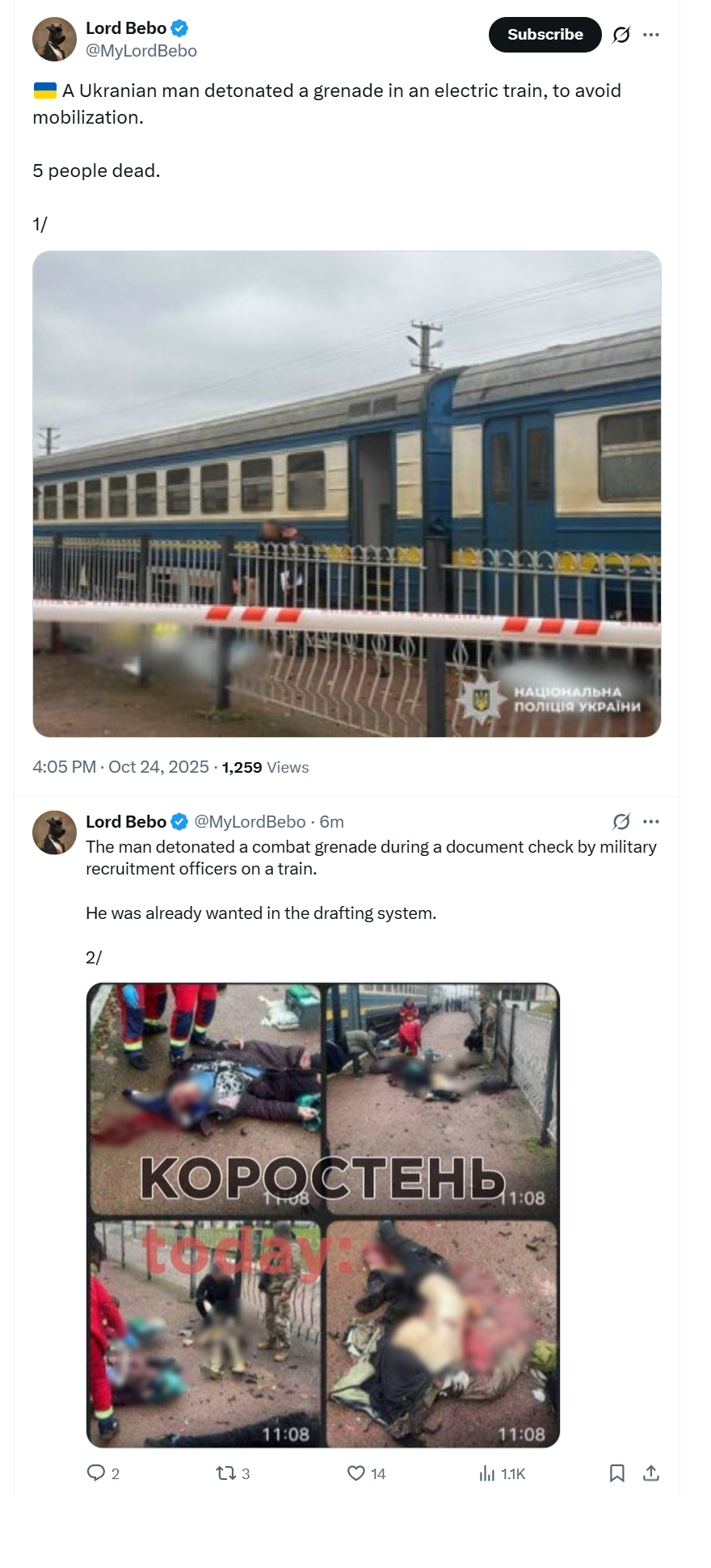 ▶NEW CLIPS>North Korean Veterans of Kursk march while singing To Serve Russiahttps://files.catbox.moe/s85ufe.mp4>Kiev at night, 10/10/2025https://files.catbox.moe/wenlx1.mp4https://files.catbox.moe/7qfa4i.mp4https://files.catbox.moe/7m3ueu.mp4>The Ukraine's Counter-Offensive to retake Krasnoarmeysk ends in boiling coffinshttps://files.catbox.moe/kc7rs3.MP4>Kharkov, 10/05/2025https://files.catbox.moe/2vaq24.MP4https://files.catbox.moe/8g7jlq.MP4https://files.catbox.moe/s7i0h5.MP4https://files.catbox.moe/8evzj4.MP4https://files.catbox.moe/5v2bkn.mp4>Lights out in Chernigovhttps://files.catbox.moe/hbyvl5.mp4>DRG Spetsnaz liquidate SBU convoy behind enemy lineshttps://files.catbox.moe/o51o63.mp4>Russian troops liberating Verbovoye Dnepropetrovskhttps://files.catbox.moe/3k0zpb.mp4>Gerans flying into Dnepropetrovsk cityhttps://files.catbox.moe/8dfefm.mp4https://files.catbox.moe/c2uip4.mp4https://files.catbox.moe/gn4ba3.mp4>Missile/Geran strikes in Kiev region 9/28/2025https://files.catbox.moe/huyfvu.MP4https://files.catbox.moe/ym87op.mp4https://files.catbox.moe/8h7q0h.mp4https://files.catbox.moe/6w7ddk.mp4https://files.catbox.moe/da1ige.mp4https://files.catbox.moe/rd2wiz.mp4https://files.catbox.moe/rnhp4x.mp4>Zelensky admits the Ukraine is losing the warhttps://files.catbox.moe/cd37w8.mp4>FSB Counter-Terror Unit Gorynych of Donetsk liquidates AfU drone operators targetting civilians near Toretsk and Horlovkahttps://files.catbox.moe/dwopoq.mp4▶Archivehttps://rentry.org/chugvidz