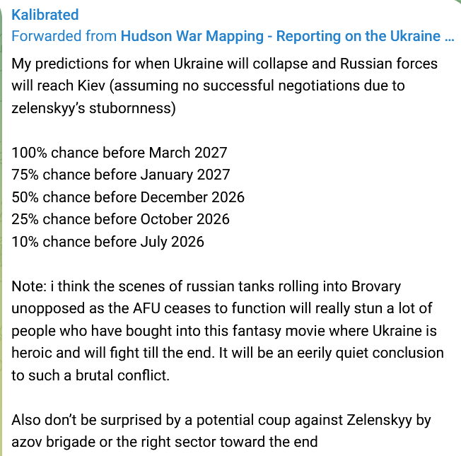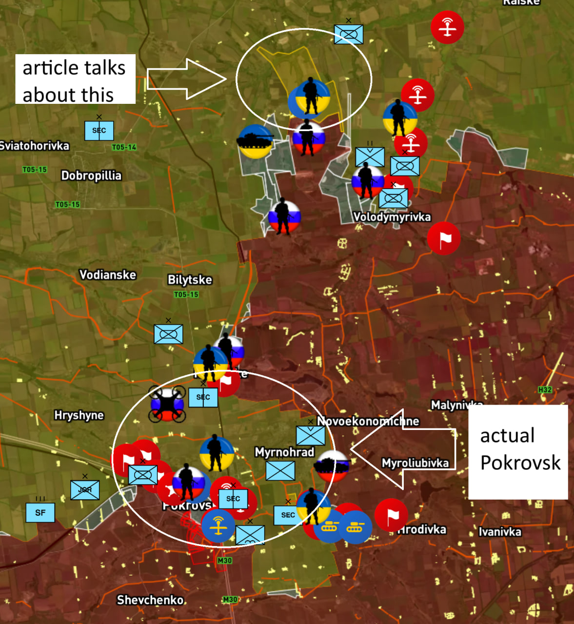 >>519699530>so aside from deep cope is anybody actually claiming this? every map i see is the opposite.he article is talking about Bunny Ears area, which is north of Pokrovsk city.David D. spent 2 months sperging that Russians will be defeated there. But at this point, he himself is engaging in media-diversion tactics, to keep people's eyes off Pokrovsk itselfsee picrel
