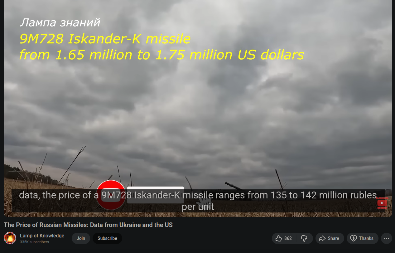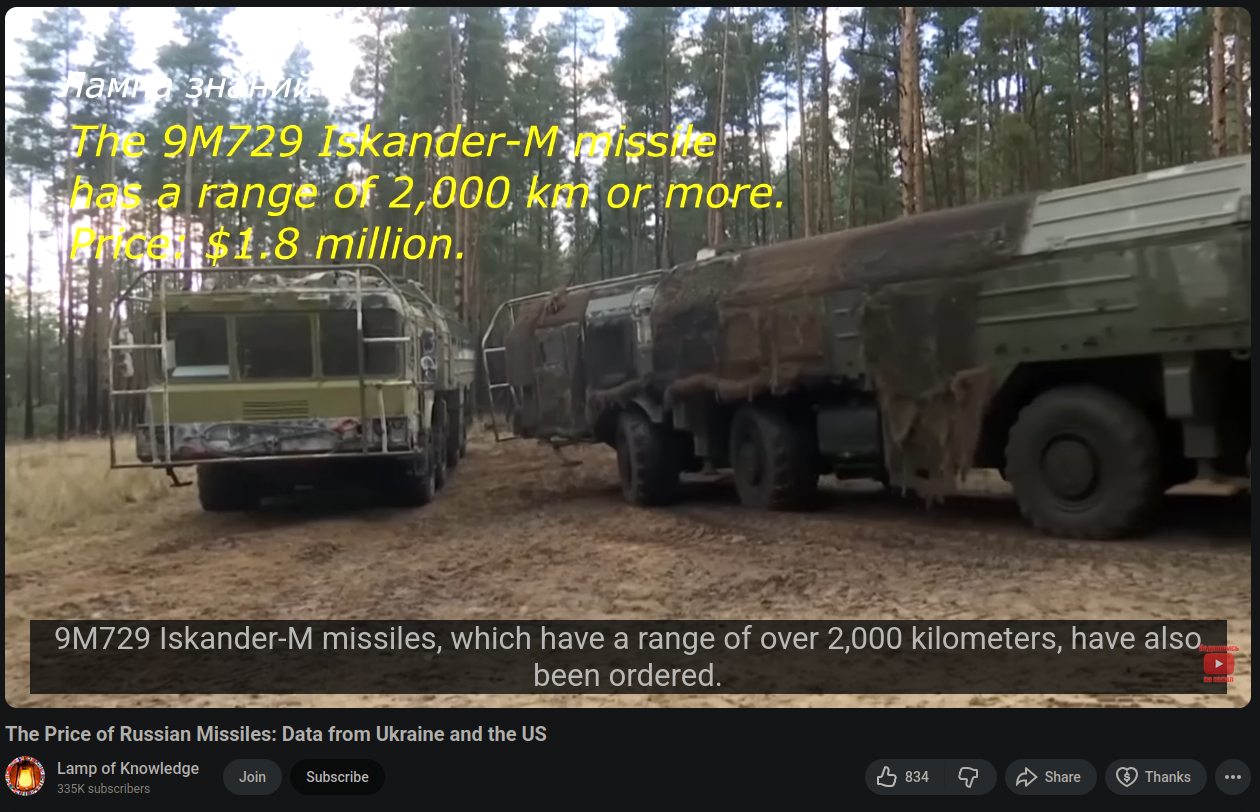 >>519697670No they already listed the Iskander-K and its cheaper, this 2000km Iskander is in the price range of a Ballistic missile. >https://www.youtube.com/watch?v=bcbURr4Wv1g>>519697674>>519697757I guess thats true. Shouldnt be too hard to do. Yeah now looking at it, it was weird seeing Russia not having any MRBM's considering China and Iran have been pumping these out. Even the North Koreans have some too.