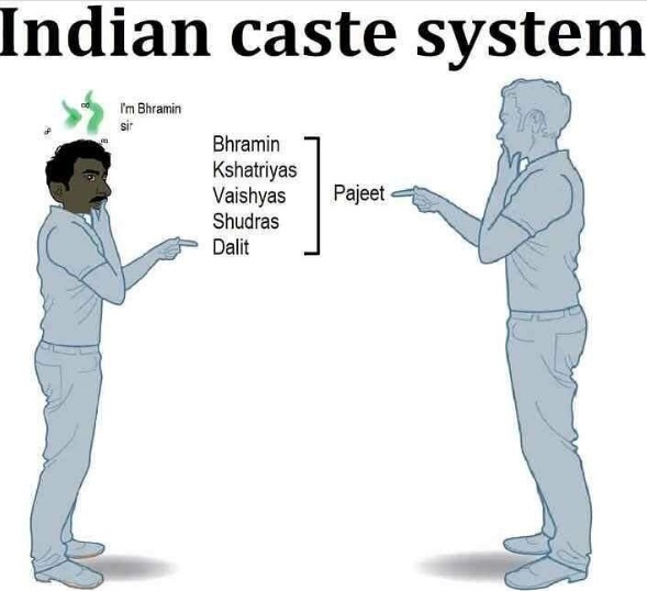 I'm actually Indian. I have to tell you honestly we are all dalits. It's actually better for Indian society if we adopted this mindset. The other one is ridiculous. You. Are. Not. White. Putting your own ppl down doesn't make you white
