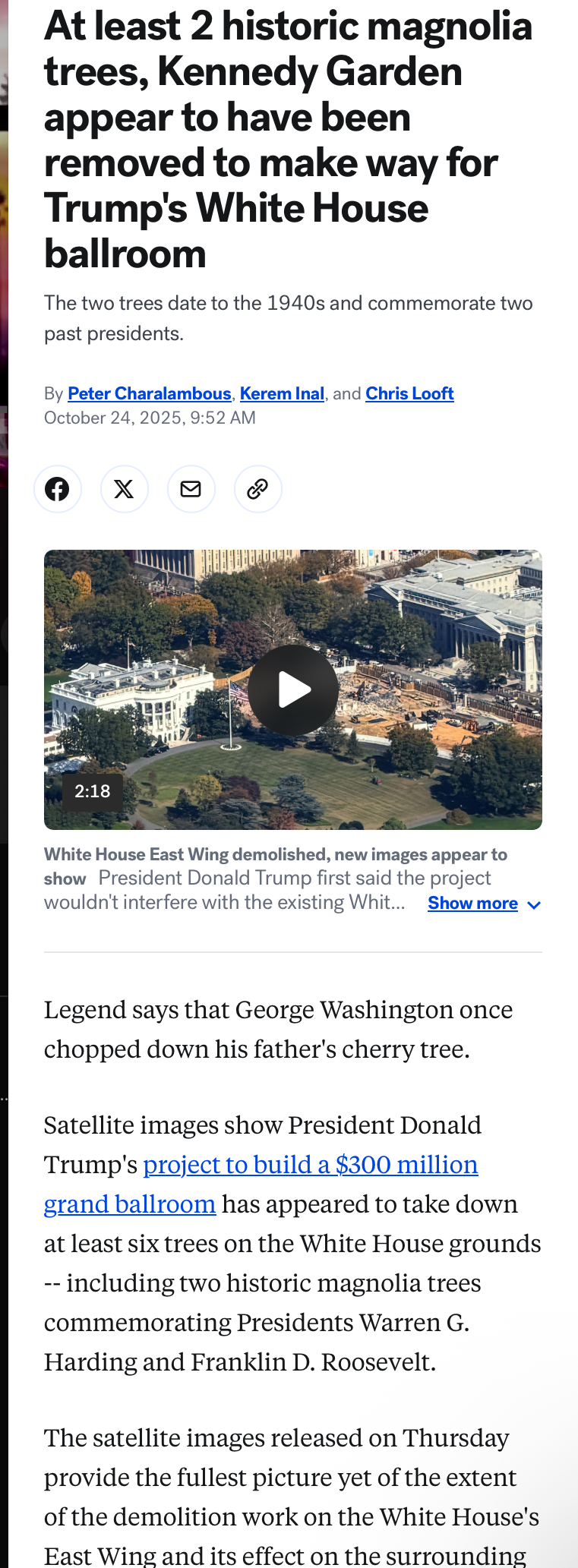 > When speaking about the ballroom project earlier this month, Trump marveled at what he said was the lack of an approval process, compared to his experience constructing buildings in New York. >"I said, 'How long will it take me?' 'Sir, you can start tonight, you have no approvals.' I said, 'You gotta be kidding,'" Trump said. "They said, 'Sir, this is the White House, you're the President of the United States, you can do anything you want.”Dinald Dump tore down TWO trees that were designated as “commemorative trees” - one was for Warren Harding and one was for Roosevelt. One tree was over 100 years old. The other was 85 years old. And he paved over the Rose Garden. Brappard Frump is a real life Captain Planet villain. Imagine making a thread shilling for a destroyer of the planet…