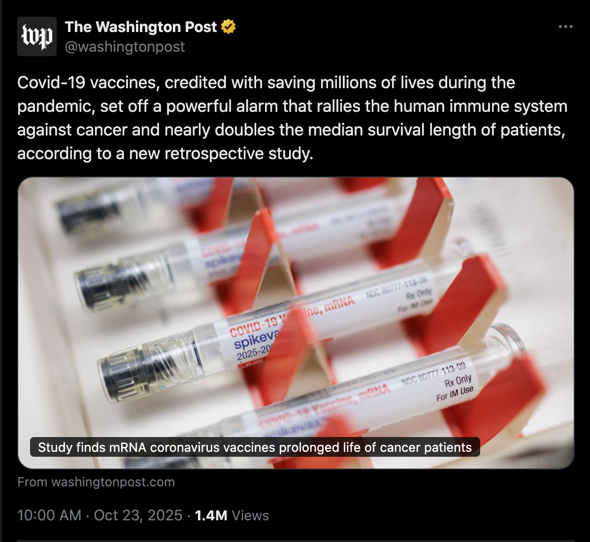 >>> Gives you cancer and myocarditis>>> myocarditis killes you first>>> we cured cancer!