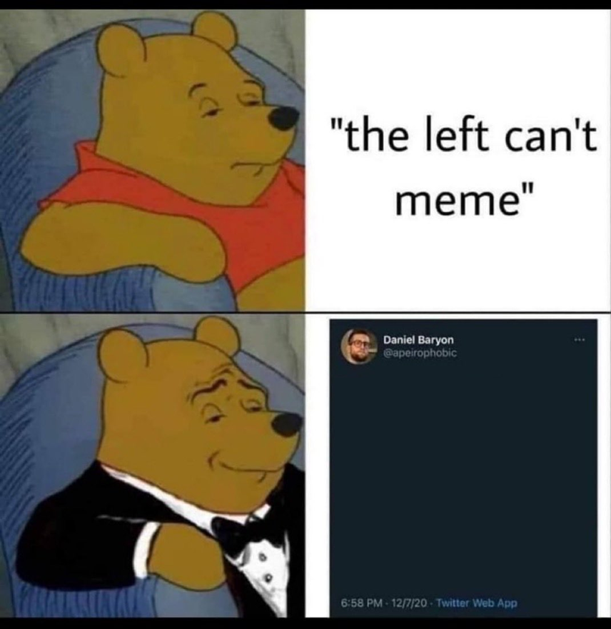 >the left can’t memeThe right is incapable of art, culture, or humor.