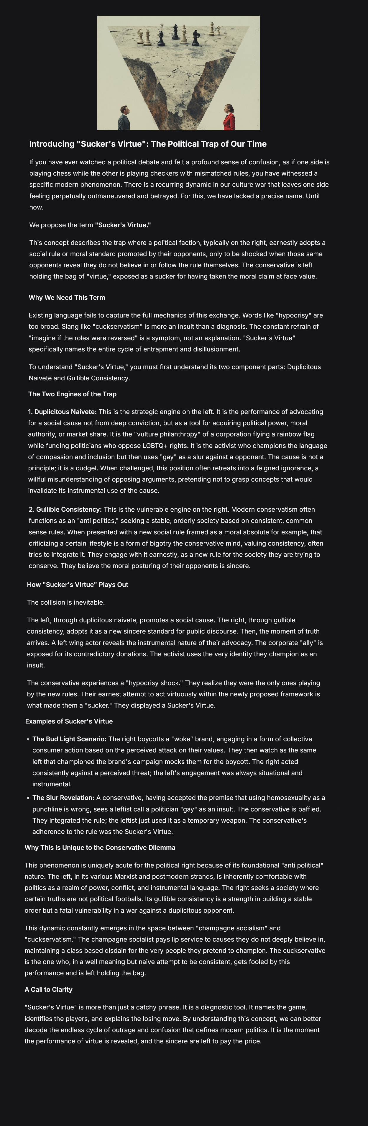 clear case of "Sucker's Virtue."