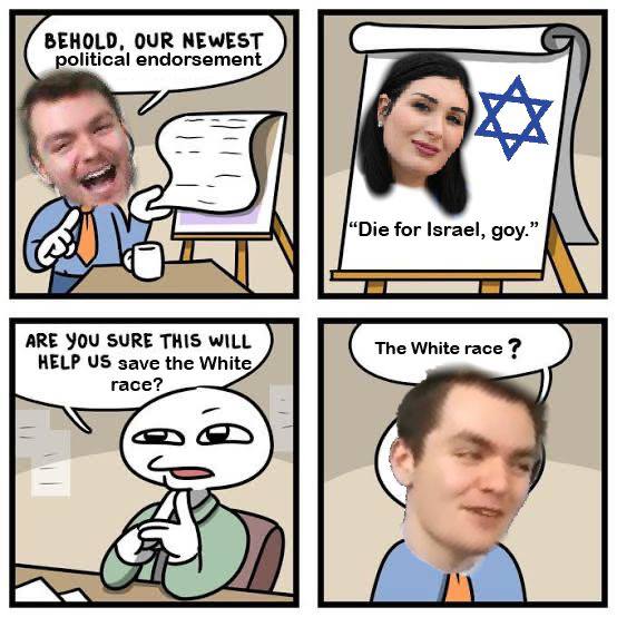 >>519813111It's just bizarre how he constantly smears Tucker & Candice as 'Russian pawns', how he's been getting nods from Jews & Jew-controlled pawns like Tim Pool & Matt Walsh, how is constantly bemoaning 'low IQ anti-semitism' (lol who gives a fuck). And now this. How can anyone trust him at this point?