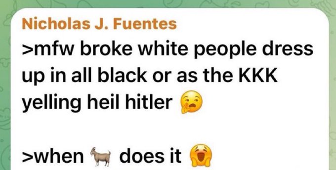 whats that, nick fuentes contradicts himself and takes the contrarian opinion?fuck, no one saw that coming
