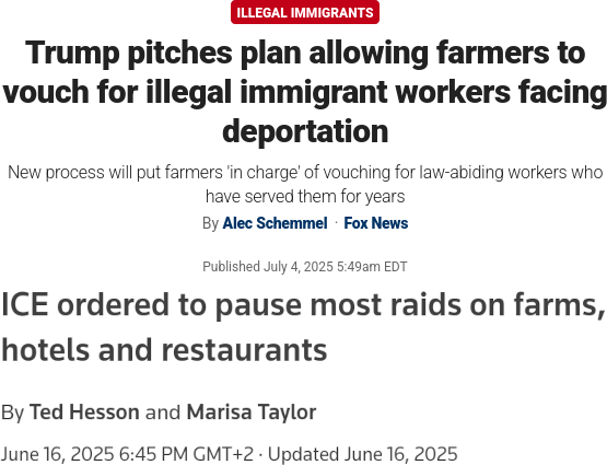 >>519821308They're not fake, tho.Trump has not retracted that he wants to give amnesty to illegals on farms and in hospitality.As someone who owns hotels and employs illegals, of course he would do that