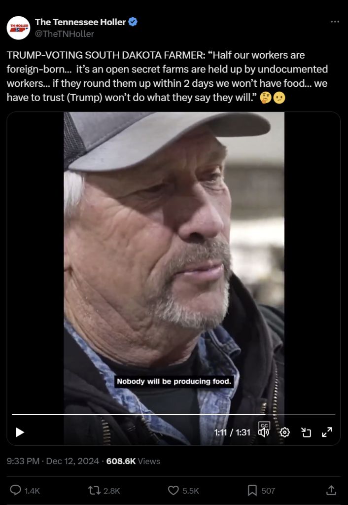 >>519819494I always thought it was weird how nobody gives a shit about "farmers" running exploitive businesses. Modern day slave owners, 3 months ago you can be sure they were smug threatening to call ICE on their workers if they don't work longer days but now that ICE really did show up they're crying no fair.