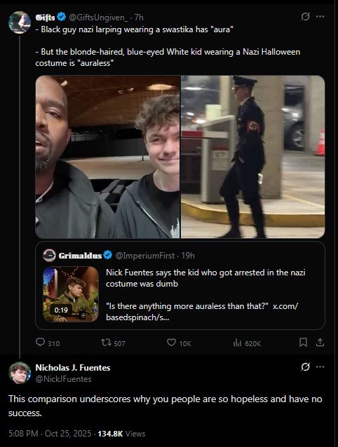 Nick Fuentes worships niggers who post interracial porn.