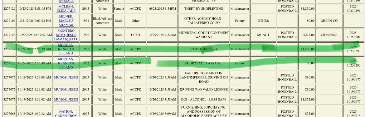 >>519828329Probably assault and disorderly conduct for punching that woman. >>519824736