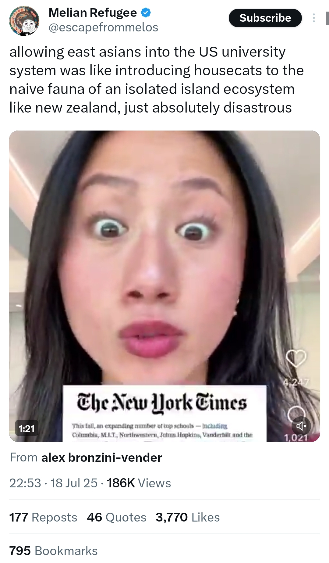>>519829495the thing that's hilarious about asians is they see all this stuff about whites being racist and think it means whites have something against Asians so they get all guarded against their white neighbors and colleagues and then get stabbed by a nigger in on the street