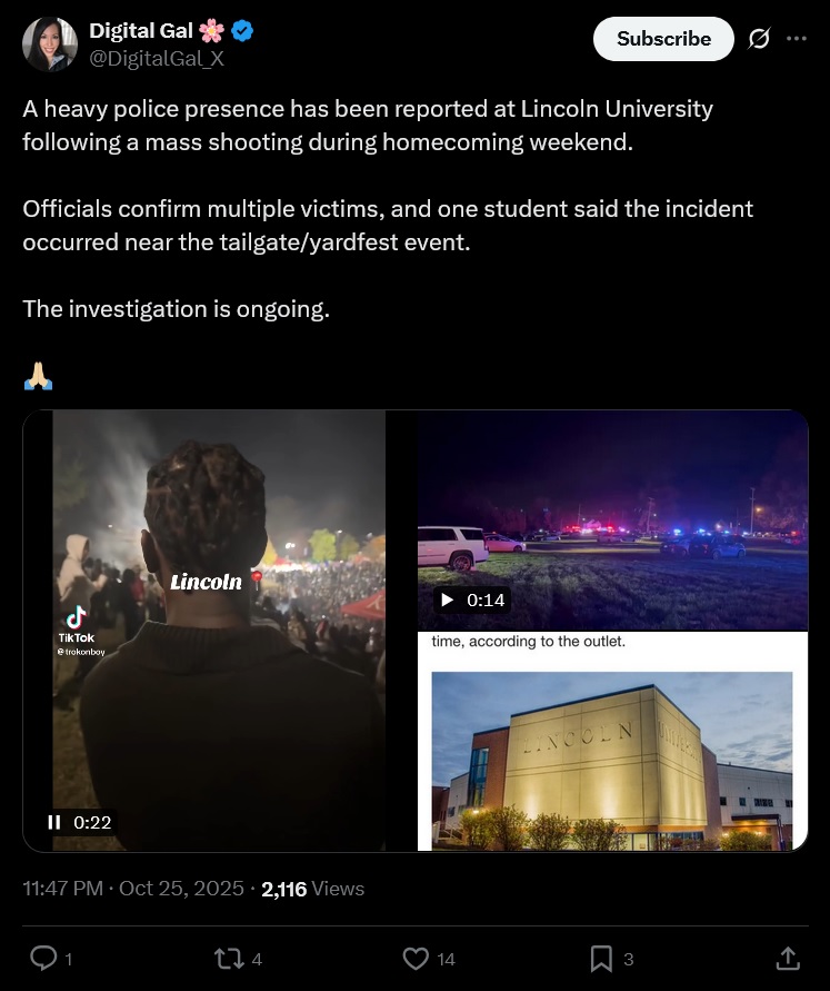 Weird, I didn’t see this plastered across my local new stations and only a small article on most news sites.>Lincoln University is a Historically Black University about 55 miles west of Philadelphia.Ah, that explains it. Can’t play into “stereotypes”.
