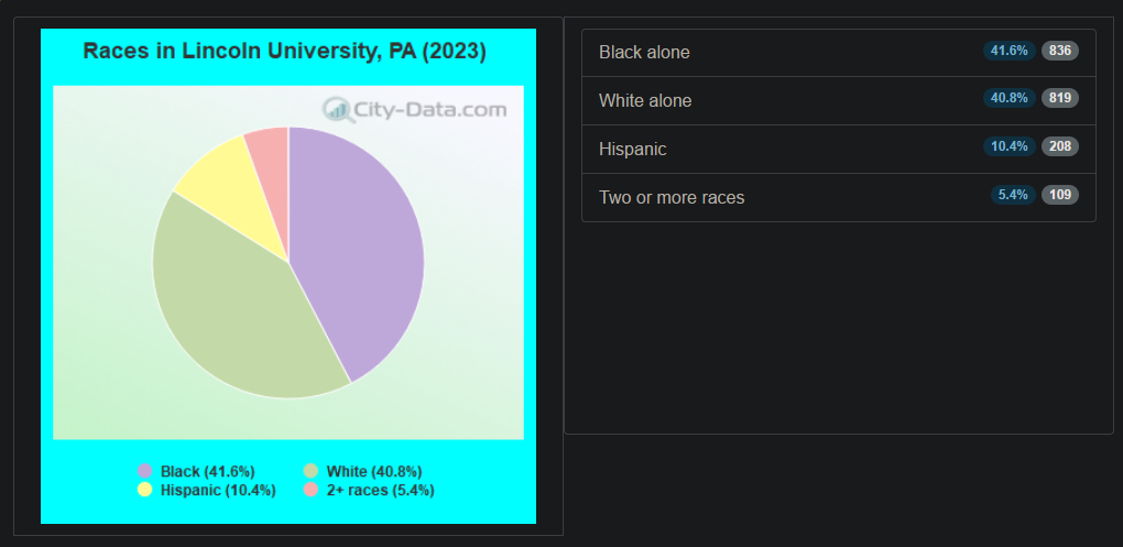 before you read the infographic try to guess how many niggers by percentage is the citythen ask yourself what happenedhttps://www.city-data.com/city/Lincoln-University-Pennsylvania.html