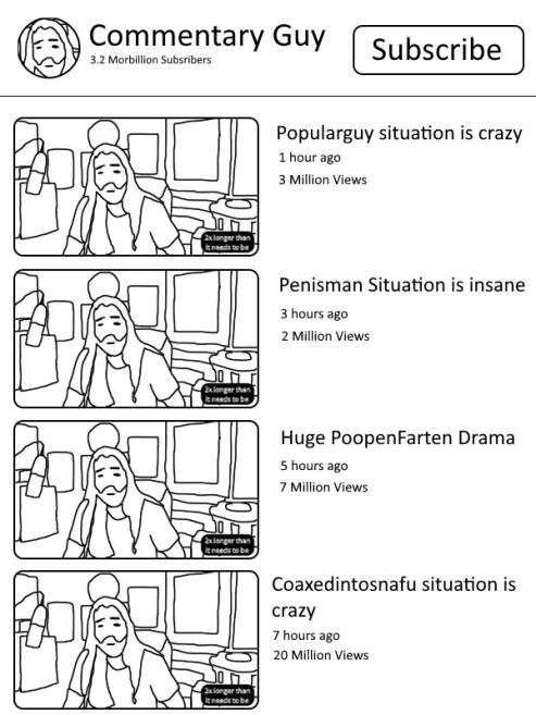 this guy makes poop and cum jokes. and you are surprised he isn't the pinnacle of creative content?