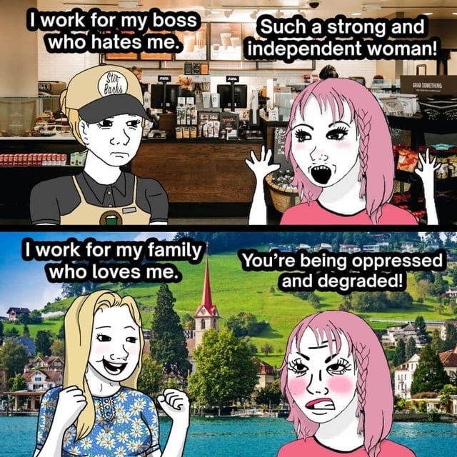 >>519846557just compare countries where it's legal with countries where it's not. where buying sex is illegal men are forced to put up with women's bullshit and white knighting for sex is extremely common. this leads to weak men who have feminine opinions in order to not anger their women. feminists love this. in countries where men can just say "fuck this i'm out" and go get sex from a hooker women tend to be more conservative because they want the man to stay. this leads to strong men. feminists hate this.