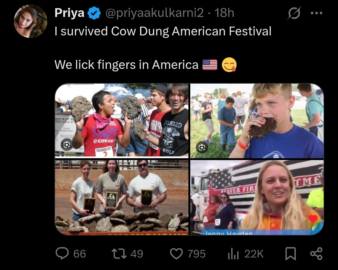 >>519865168We have cow pie competitions to see who can bring in the biggest turd but we don't eat them. The kid in the top right is eating chocolate shaped to look like a cow pie as a joke.