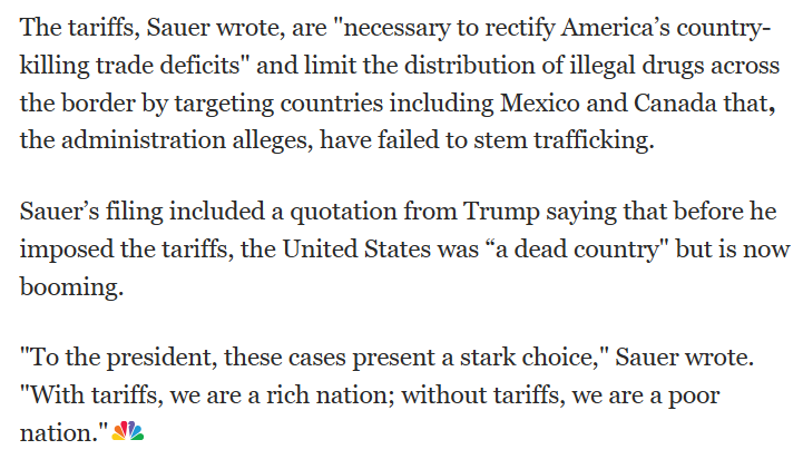 Trump is still saying drugs from Canada is a problem. What an idiot.Before Trump's tariffs, fentanyl from Canada accounted for less than 0.2% of all fentanyl coming into the US. And it was reduced even further after Trump's tariffs and Trudeau strengthened the border even more. From Canada it was 40 pounds, compared with Mexico's 20,000 poundsThe trump administration is truly living in delusion. >“The fentanyl coming through Canada is massive." -trump, idiot-in-chiefhttps://www.nbcnews.com/politics/supreme-court/trumps-dramatic-rhetoric-tariffs-ramps-pressure-supreme-court-rcna238207