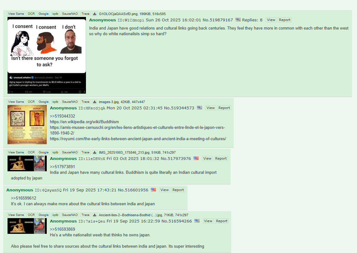 India and Japan have good relations and cultural links going back centuries. They feel they have more in common with each other than the west so why do white nationalists simp so hard?