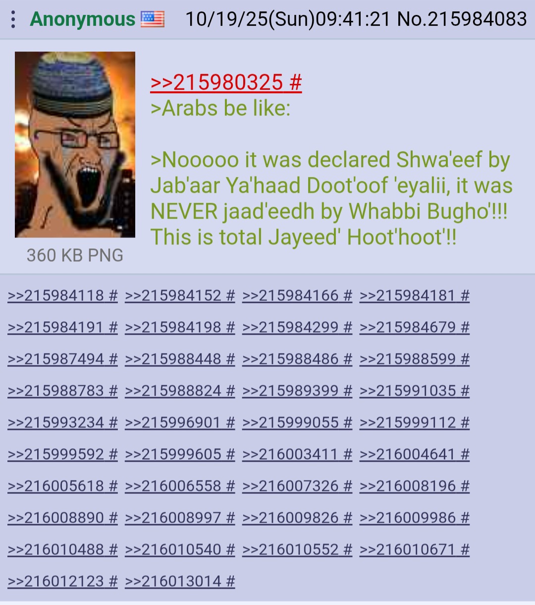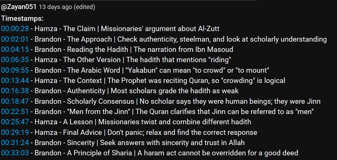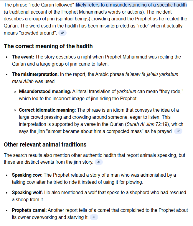 >>519910846>1200 years of commentary of the al-zutt>never referred to as jinn before>other clear references in other haddiths to the al-zutt being men>trust me bro, they were jinnIt's almost as bad as the other "refutation">that word you're translating as "mount" doesn't actually mean mount, it just means harass>even though the other thousand times it's used it means mount