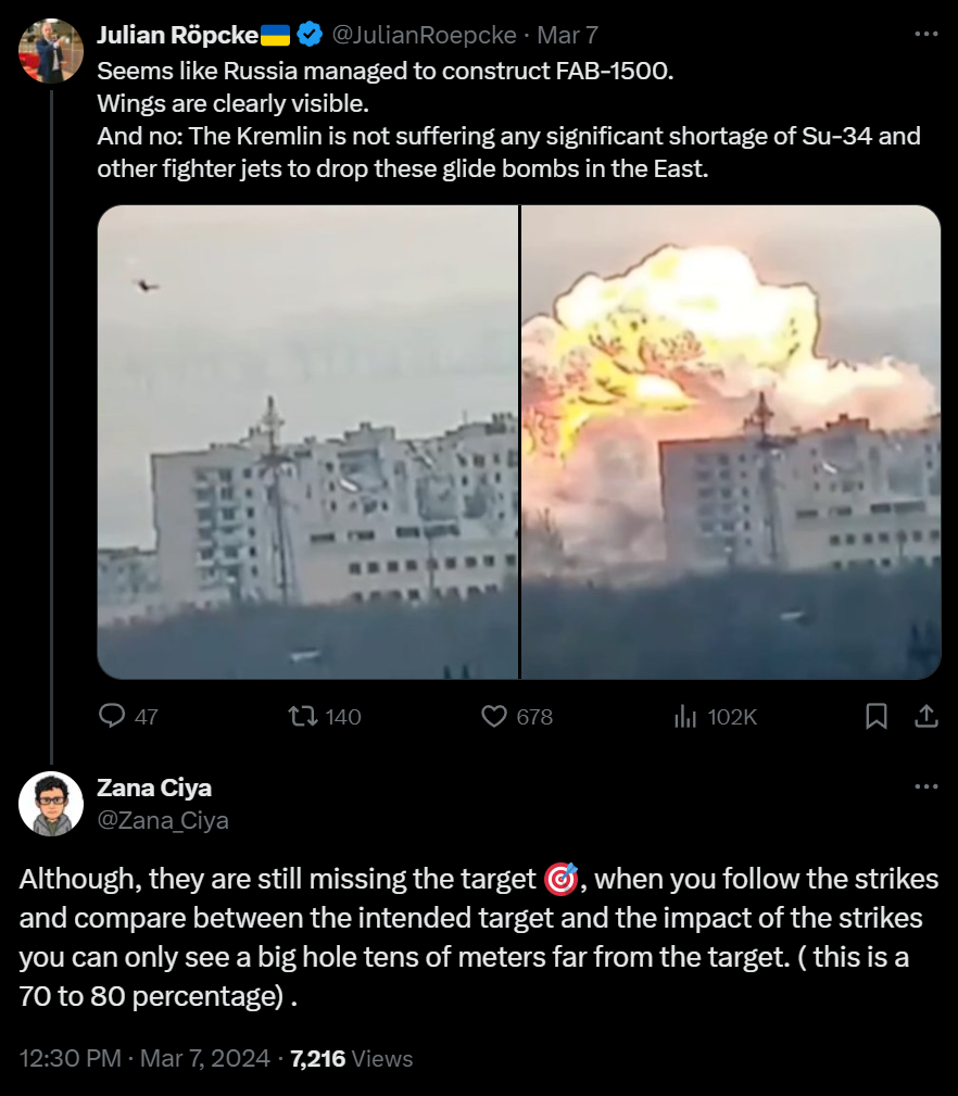 >>519937883>Gigantic explosion from one ton bomb>"lol, surely they missed the target by a few meters!"Those things could hit the next block over and still have effect on target, fucking hohol /k/ope is incredible.