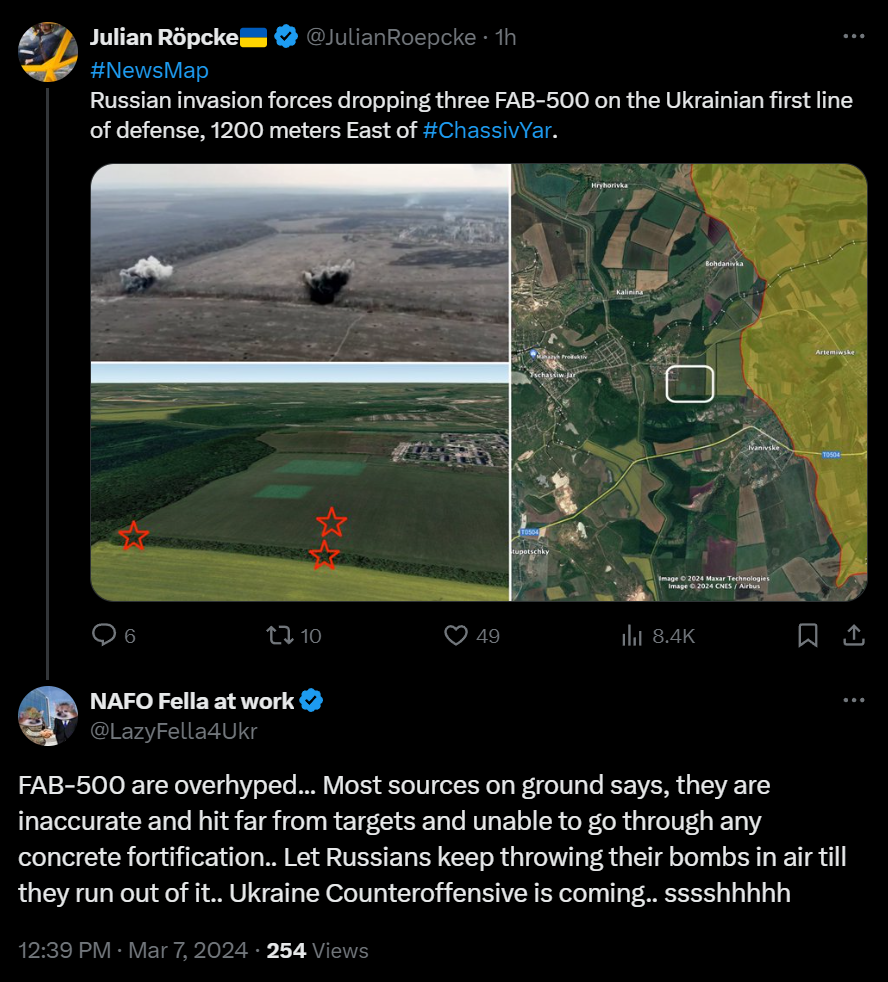 Is there any truth regarding hohols taking Zatyshok above myrnohrad and more towards the bunny? Hohols all claim so, suriyak already has blue dots on his maps indicating he will paint it all over for hohols following deepcope and nafo mappers once he updates.Meanwhile Russian milbloggers are extemely silent regarding that area in general, at most i saw radov mention it a few days that they were counterhrukking but he's either drunk or wont update it either, plus how reliable even is he.