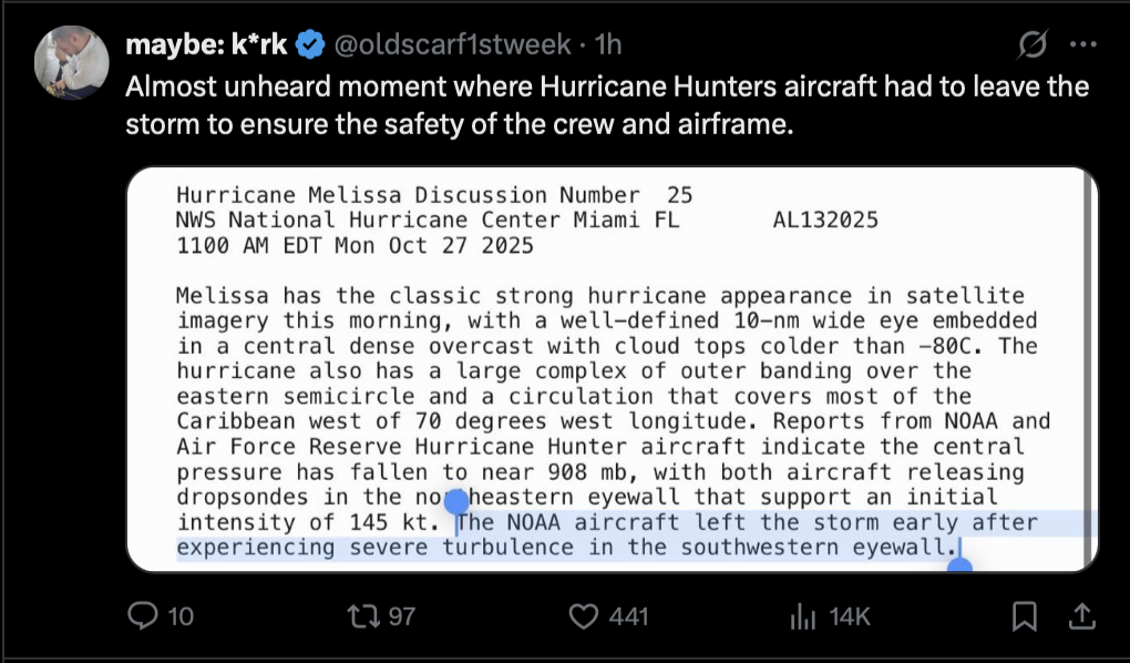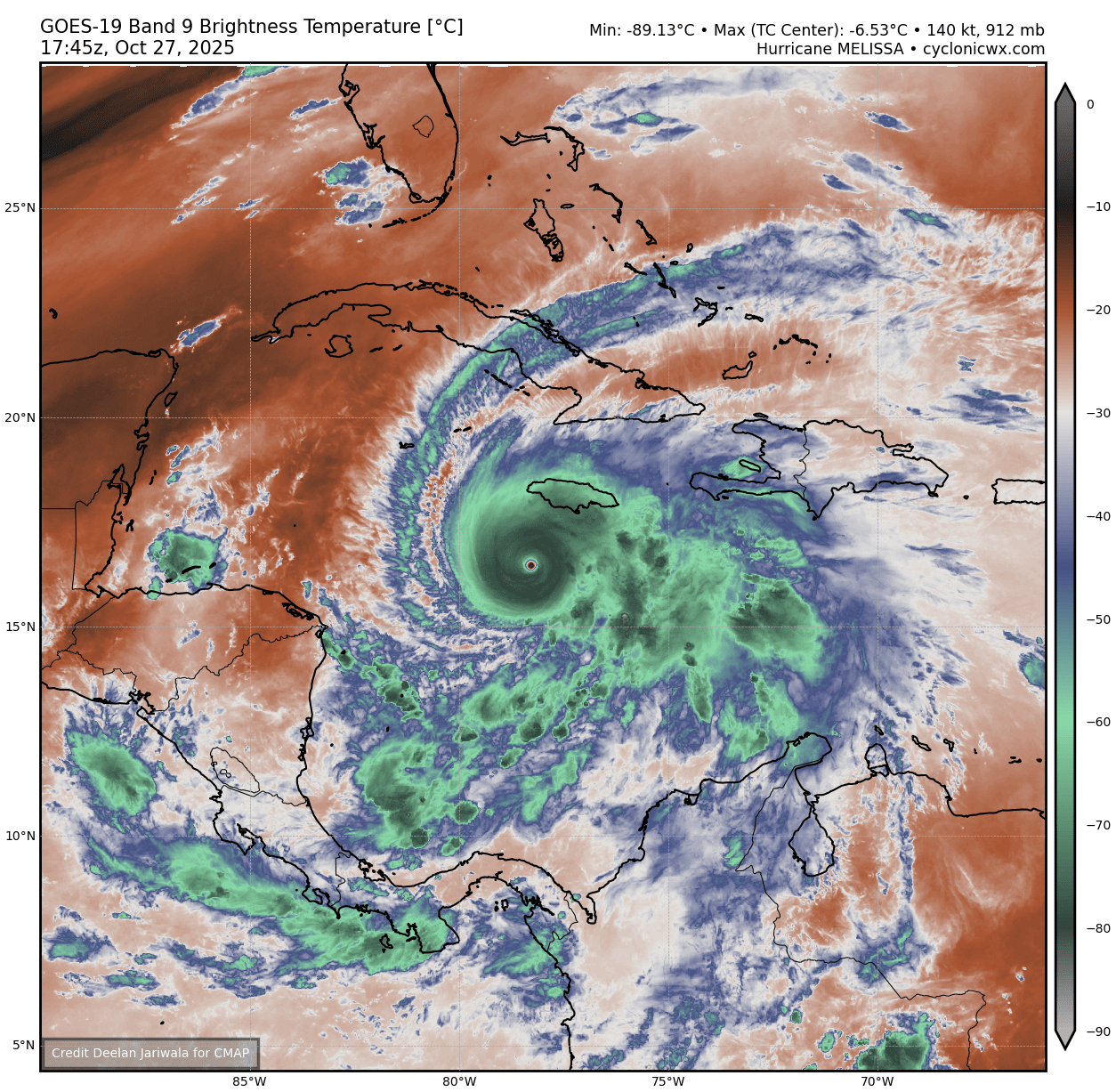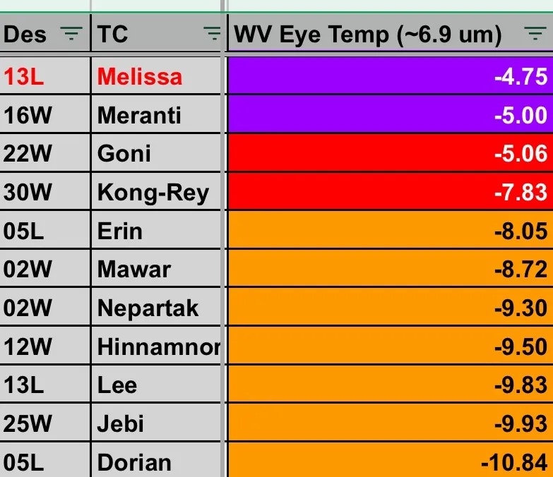 Melissa now has the driest eye on record, even exceeding the Pacific Super Typhoons.