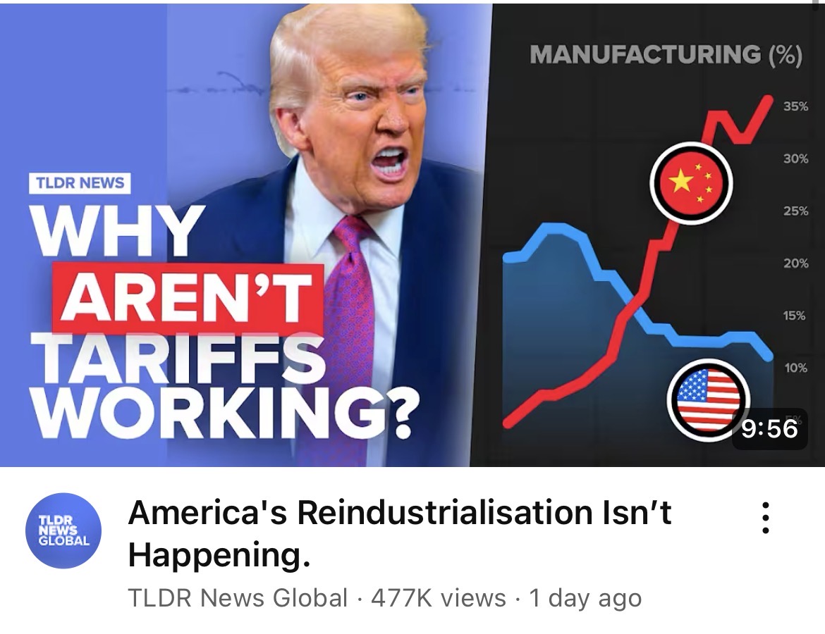 >>519973236But can anyone point to significant onshoring and new plant development occurring and simultaneously separate it from planned investment taking place prior to the Tariffs being announced? It's not showing in economic metrics, this is mostly resultant of AI investment which is long running and money changing hands between benefactors. Even this isn't profit driven but largely speculative. Sometimes propaganda is the truth, investment in manufacturing is not occurring. There is ample space and margins for investment in energy production and this hasn't manifested either. All projects in the pipeline aren't enough to lower energy costs.