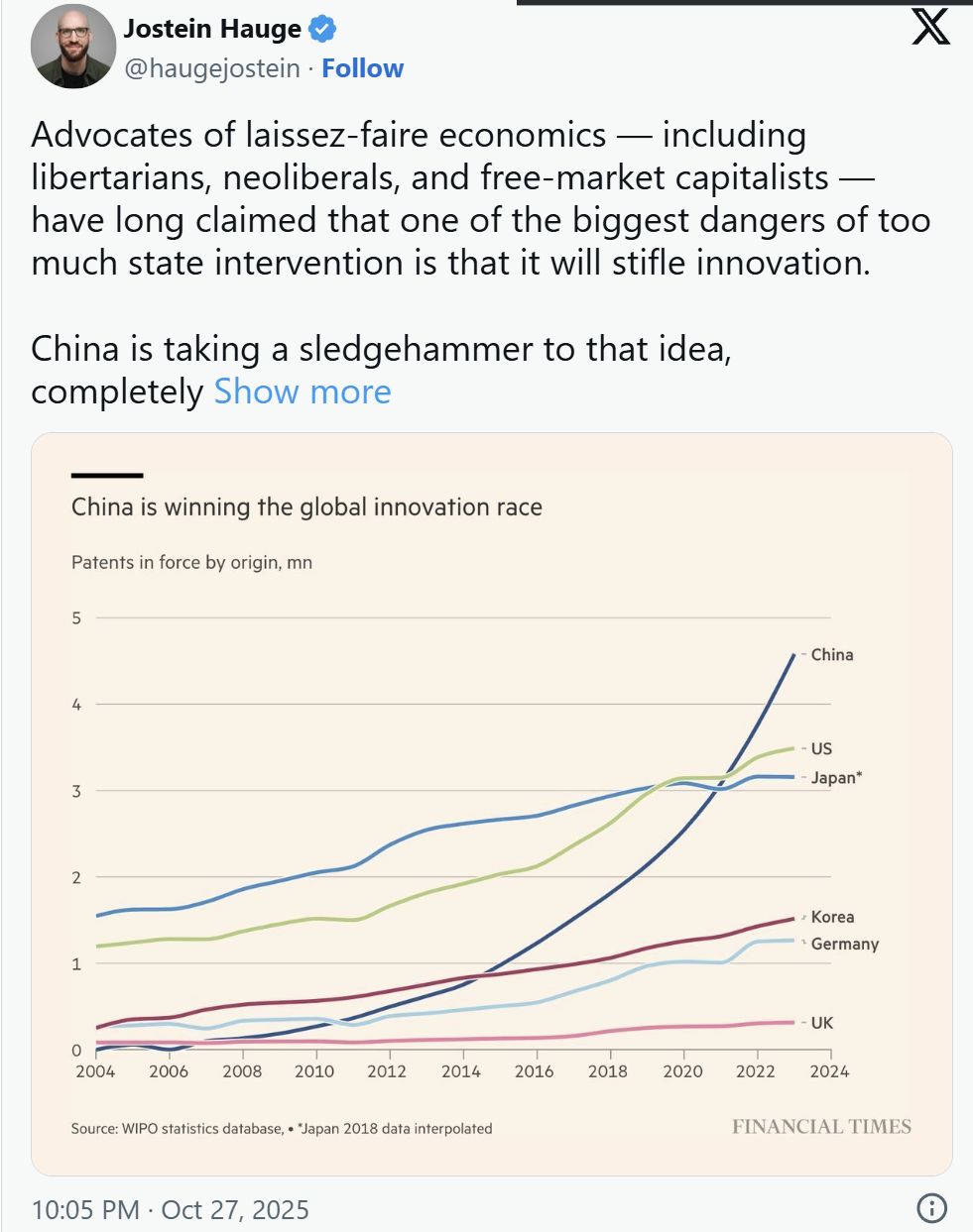 China didnt suddenly win because they turned Capitalist.China won because they retained Communist Controls Over Capital anddenied the jews their corrupt rent-seeking behavior that stifles innovation.>But the state — not the capitalists — ultimately controls the direction of investment in China.>The state — not the capitalists — has formulated strategic industrial policies to make China a global powerhouse in clean energy tech, electronics, and rare earths processing.>The state — not the capitalists — is in control of the means of production and the commanding heights of the economy.>China is a socialist market economy where corporate power and wealth don’t translate into immense political power. This makes China fundamentally different from many Western capitalist economies. And this also explains why China will most likely win the global innovation race even more decisively in the years ahead.You literally cant prove it wrong. Becaue China exists.