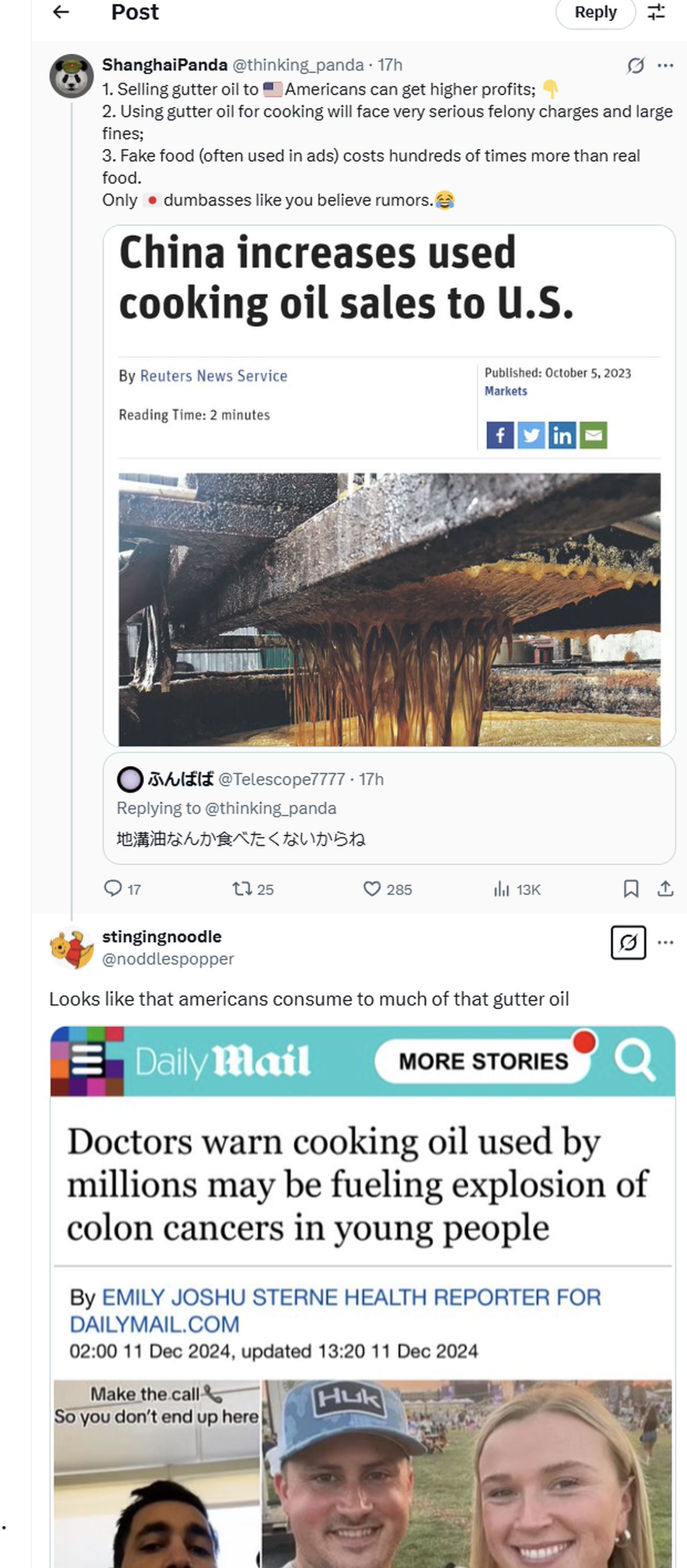 >>519980716Which is exported to the US for making goyslop.Trump in fact threatened cancel Chinese gutter oil imports recently, which was very revealing.