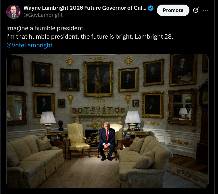 >>520003625Imagine a humble president. I'm that humble president, the future is bright, Lambright 28, @VoteLambright https://x.com/GovLambright/status/1983074533935645040