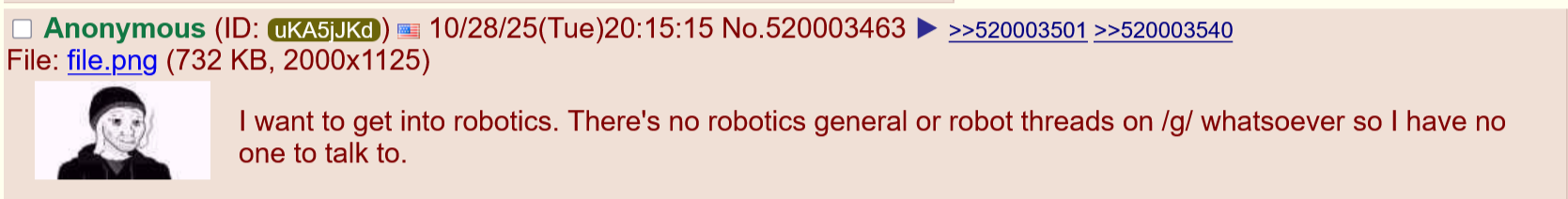 >>520006202actually they have a robotics thread anyway lol>>>/diy/2947917