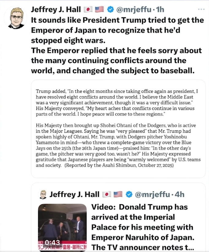https://x.com/EricLDaugh/status/1983128457820184930?t=NnUlmqs7YohLfnTtzpoLNw&s=19Sanae gave Trump a gift. Abe's putter. She is a fren