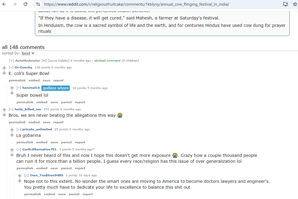 >>520005234>spread anti-india hateThen maybe stop the poop festivals.