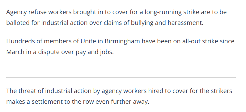 https://xcancel.com/maxtempers/status/1983098767760142368#m>Agency workers covering for Birmingham bin strikers to vote on industrial action>The agency workers brought in to cover for the Birmingham binmen striking are also going to go on strike...lol
