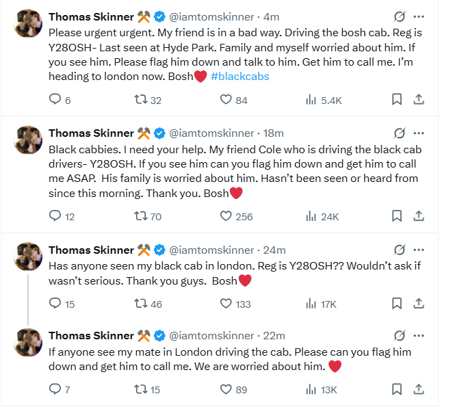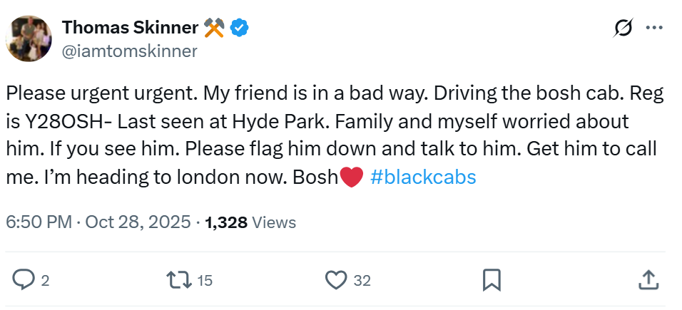 Lads smithys mens mental health is out of control, he's taken the bosh cab :(