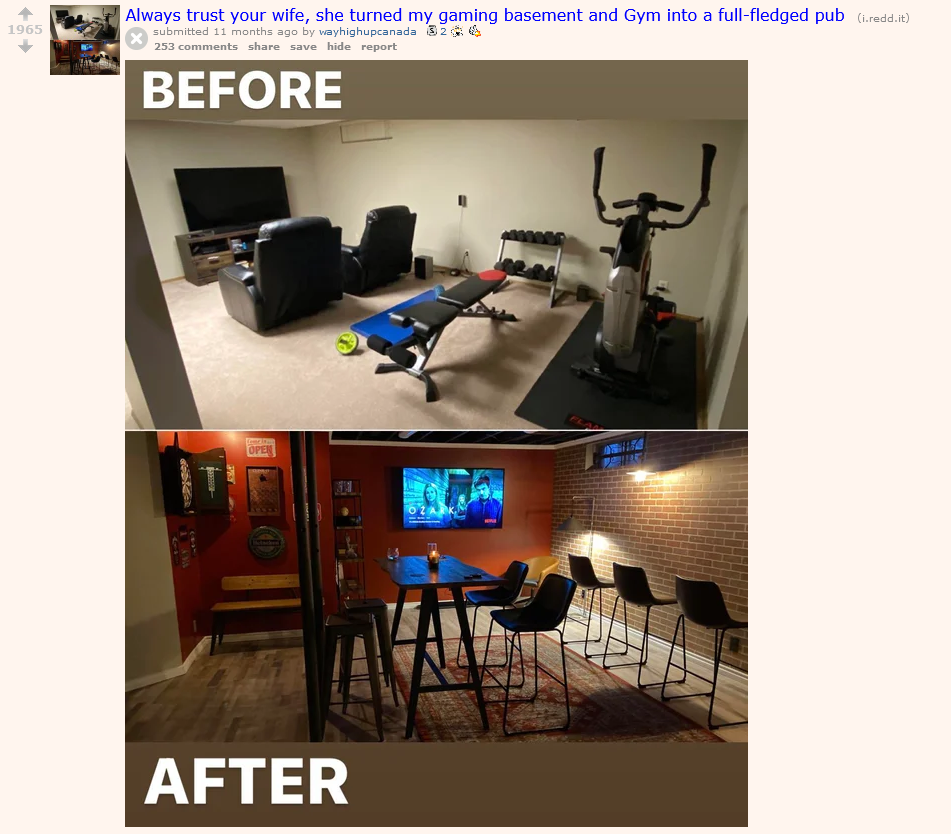 >>520061060>room went from functional workout space/tv-gaming setup to a display roomGod I sometimes hate women