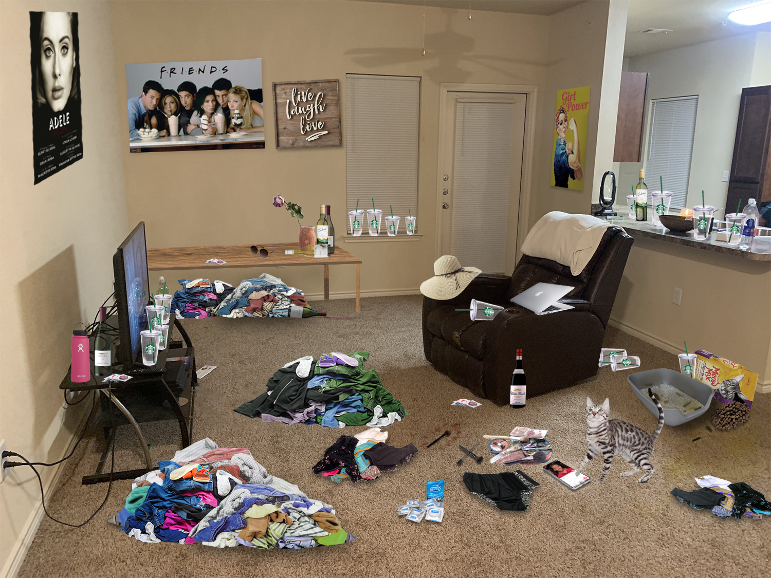 Needs a few Live, laugh, Love signs and cat turds in the corners.