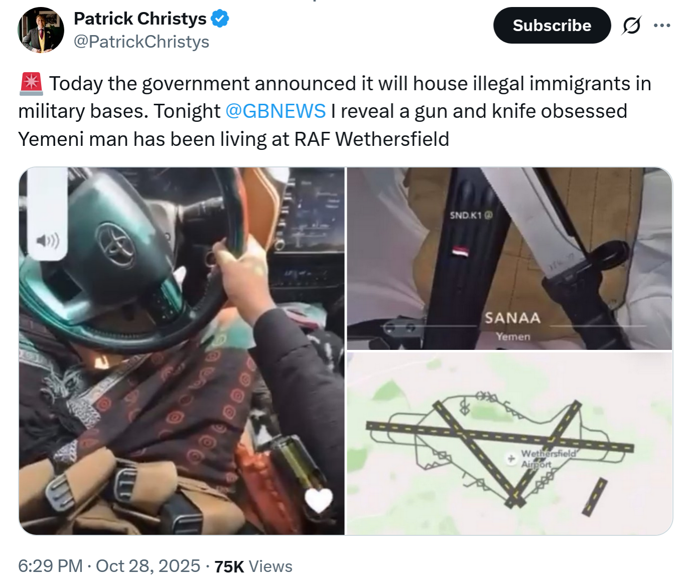 >>520067842It’s all over X. Not hard to find. Basically, it shows an Afghan migrant hacking a white British man to death in broad daylight. The man was just walking his dog and minding his own business when the migrant stabbed him from behind. It now turns out that the migrant came here in 2020 on the back of a lorry and was given indefinite leave to remain in 2022 under the last Tory government. Worth noting that the Tories’ current plan for deportations (lol) specifically excludes the thousands of Afghans they imported in secret under Robert Jenrick and Ben Wallace’s Operation Warm Welcome: https://x.com/sirsimonclarke/status/1980682391346675956