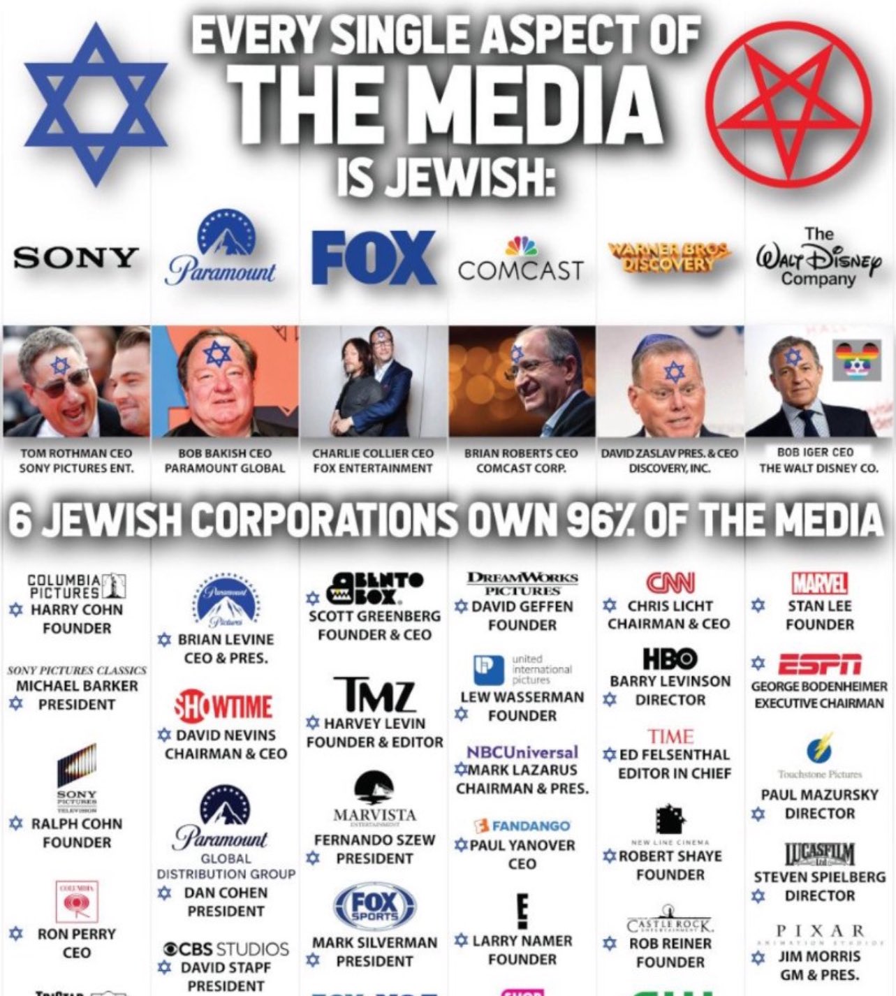 >>520090310>Ours just have better access to hollywood/broadcast mediahmm interesting how that could besurely it hasnt happened that a white country founded for the posterity of white people, that some middle eastern brown mixed infiltrator wearing a white skinsuit after raping some whites hadn't slithered in and taken control of the media?thats too ridiculous, a foreign race in control of your media, something that stupid would never happen