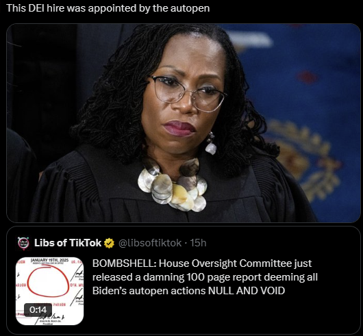 after whats happened it'd be mental illness of the 10th degree not to nullify ALL the autopen shit, the kick her out on her ass, then install someone who will not care which party is preferred and uphold the fucking constitution.