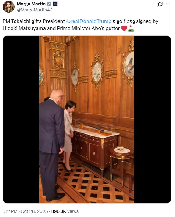 Well, until he pays for them, any gift over a certain dollar amount technically belongs to the American people. So we just got a new putter and golf bag.