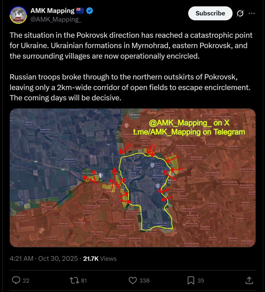 >>520179327You are looking at that map wrong the blue area is the Ookrainian counter offensive that is going all the way to Crimeuh