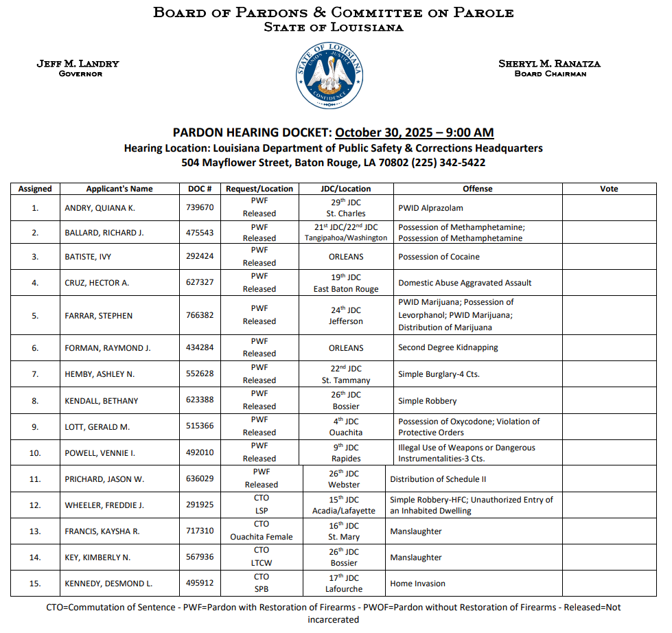 Docket for today, another long one