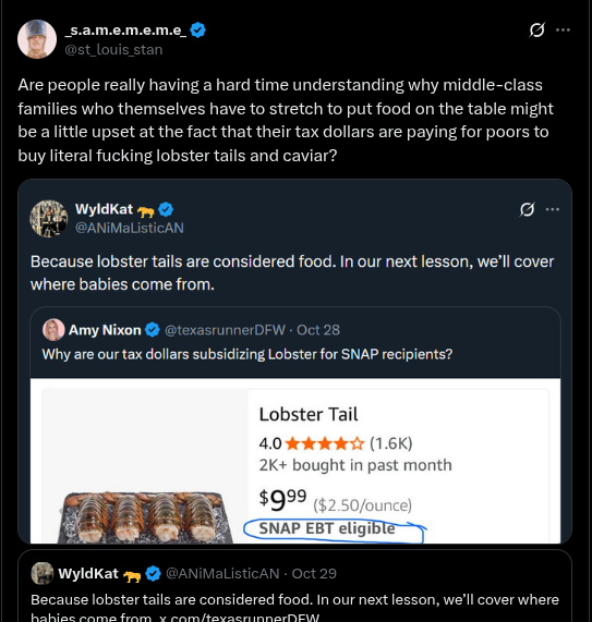 >democrat shutdown backfired>average Americans are learning how corrupt SNAP is>fat niggers buying lobstersAlso it looks like we're bombing commies