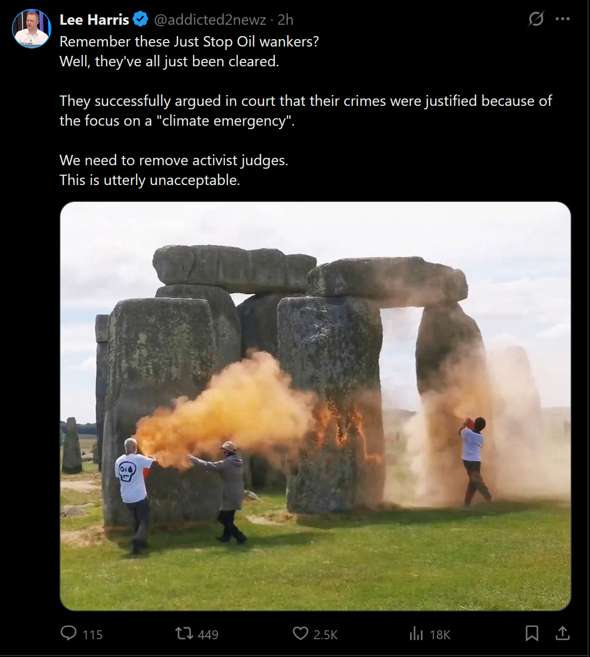 >english court drops vandalism charges against just stop oil destroying a world heritage site because the 'climate emergency' justified their actions in bringing attention to it