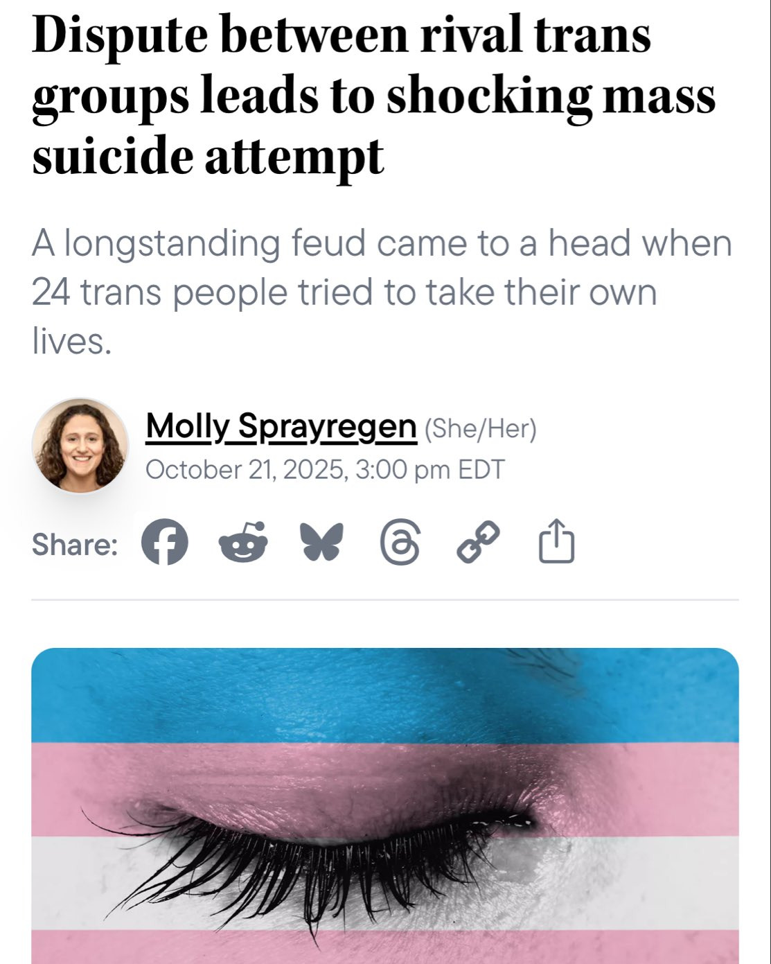 Two groups of transgenders tried committing mass suicide after a disagreementThis whole story is fucking insane:https://www.lgbtqnation.com/2025/10/dispute-between-rival-trans-groups-leads-to-shocking-mass-attempt/