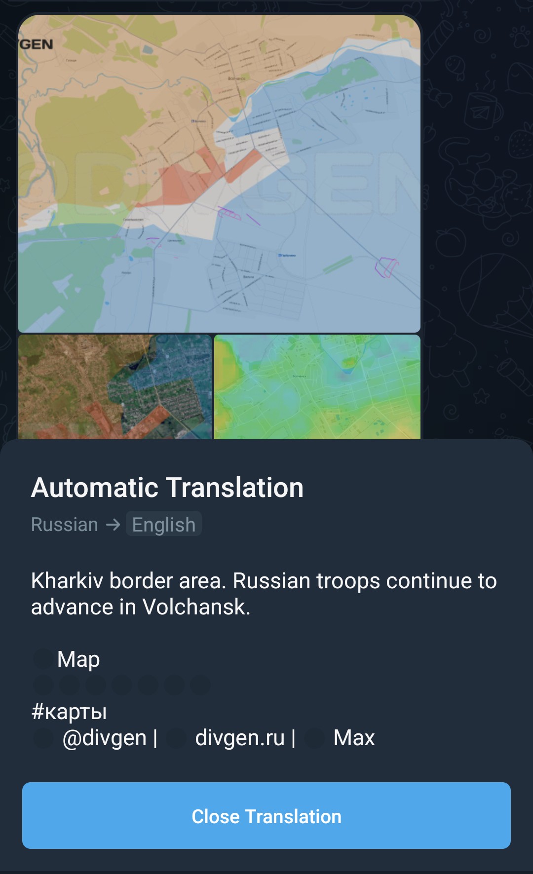 ▶MAPSRybarhttps://t.me/rybarSuriyakhttps://t.me/s/suriyak_mapshttps://www.google.com/maps/d/u/0/viewer?mid=1V8NzjQkzMOhpuLhkktbiKgodOQ27X6IVKalibrated maphttps://www.google.com/maps/d/edit?mid=1VcGZiwrEi8t9kXvVnWNEmO5ScvBWK6AWeeb Unionhttps://www.google.com/maps/d/u/0/viewer?mid=1sFRJhfNV-R1kSTXcej2MeHBzcCL8X0oDivgenhttps://divgen.ru/Air Raid Alarmshttps://alertmap.ruhttps://alerts.in.ua/enLive - Black Sea - Marine Traffichttps://www.marinetraffic.com/en/ais/home/centerx:35.9/centery:45.3/zoom:7Black Bird Group (Finnish)https://scribblemaps.com/maps/view/id/091194Livemap (Hohol)https://liveuamap.com/Copestatehttps://deepstatemap.live/ISW (neocons)https://arcg.is/09O0OSTopographical map of the Ukrainehttps://en-gb.topographic-map.com/map-wmv51/Ukraine/Copernicus satellite imageryhttps://browser.dataspace.copernicus.eu/NASA FIRMS "Firemap"https://firms.modaps.eosdis.nasa.gov/map/#d:24hrs;@36.6,47.3,6.4zMore maps:https://opermap.mash.ru/https://lostarmour.info/maphttps://t.me/s/NabrezhnyeIntel