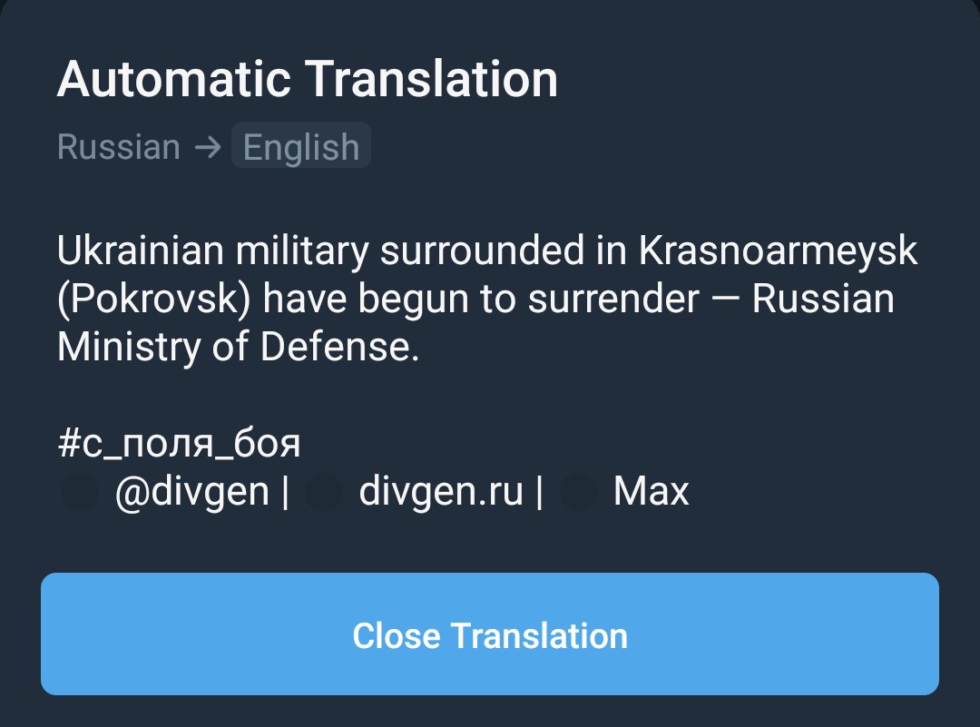 >The Russian Ministry of Defense reports that Ukrainian soldiers surrounded in Pokrovsk have begun to surrender. Apparently, this is the event that the GUR tried to disrupt with a sortie.oh nonono ukrainiggers...